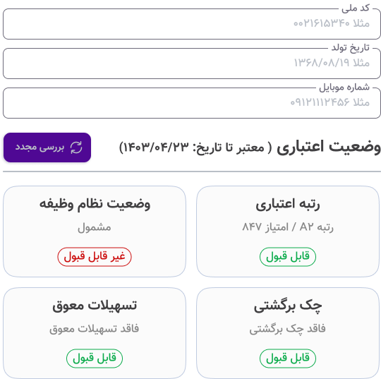 در این بخش تمام مراحل و مدارک مورد نیاز از لحظه شروع درخواست تا دریافت اعتبار به صورت تصویری بررسی شده است که مطابق با آن می توانید فرایند دریافت وام را طی کنید.